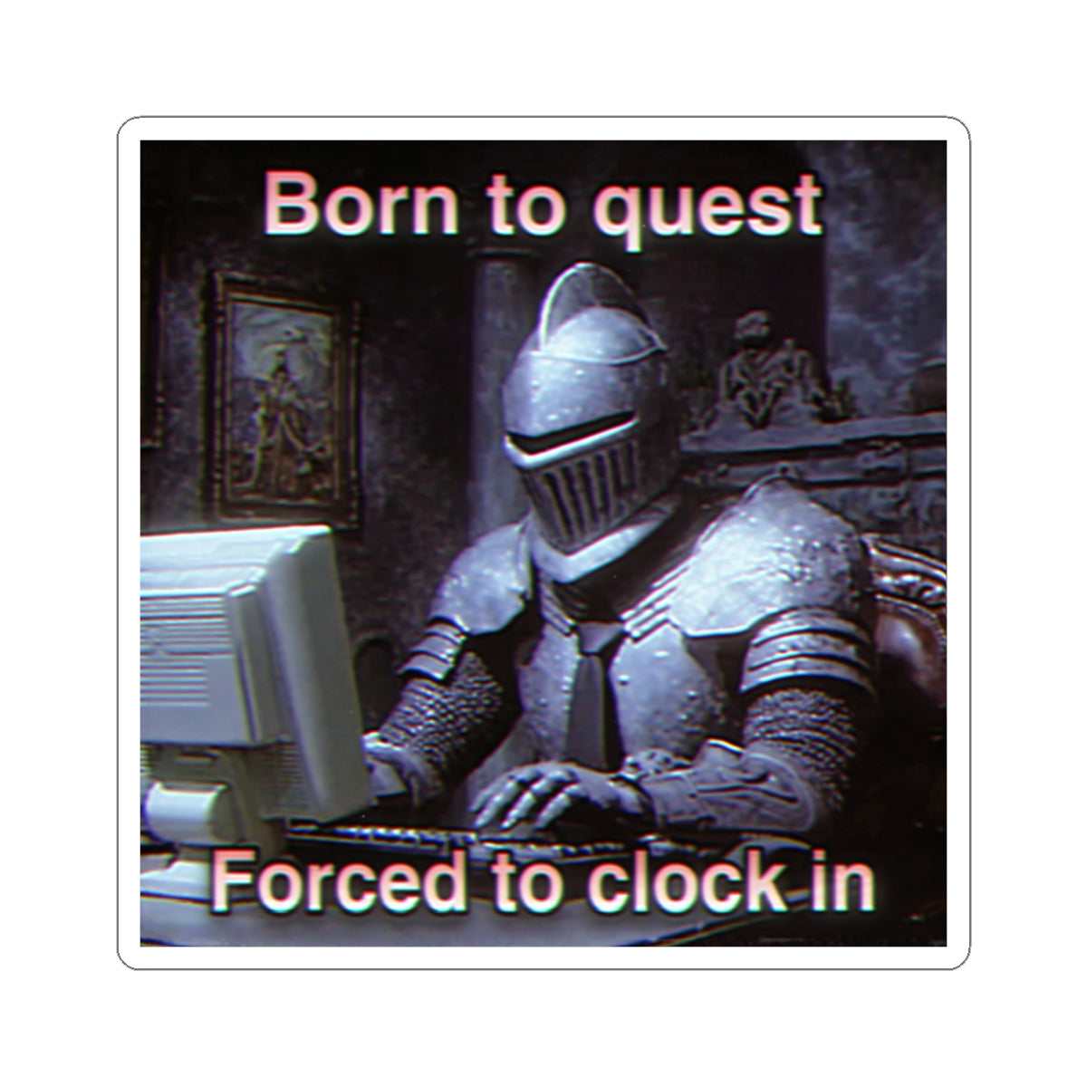 Born to Quest Forced to Clock in | Medieval Knight Office Sticker
